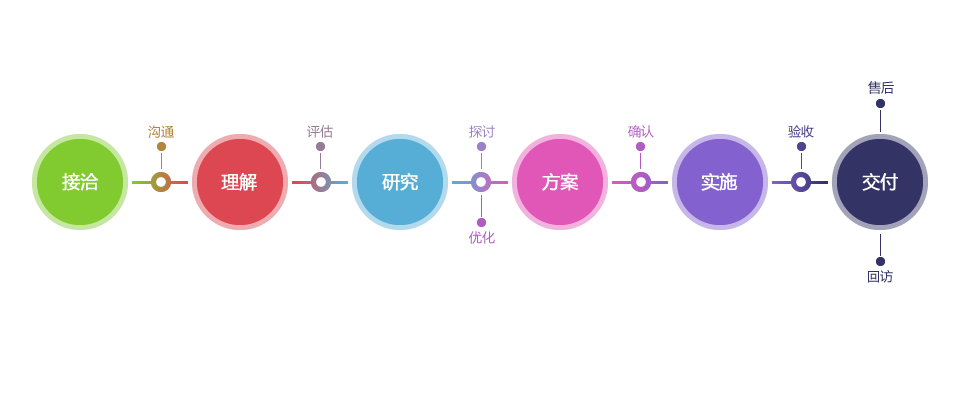 清晰、可視、可持續(xù)改進(jìn)的研發(fā)流程服務(wù),在每個(gè)環(huán)節(jié)我們都秉承著打造高品質(zhì)移動互聯(lián)網(wǎng)解決方案的開發(fā)理念。